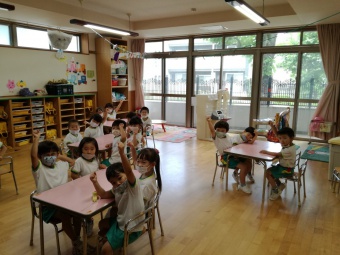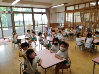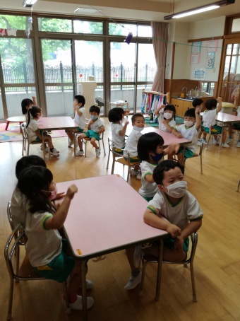 なんのお話を聞いているのかな?元気にお返事してますね。