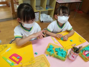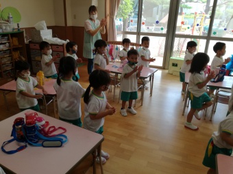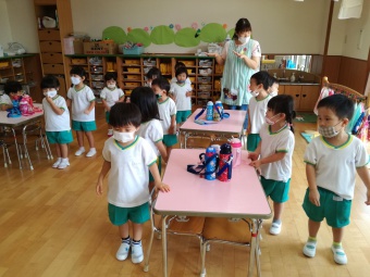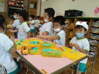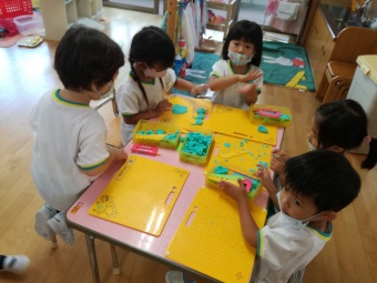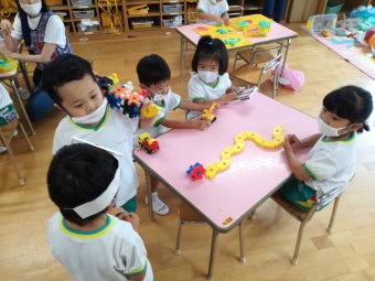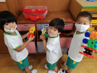 2020.09.01 立正キッズ日記 登園後の年少さん 登園後の年少さんです。好きな遊びをし、それから朝の会を行います。 登園直後は泣いていても、保育室に入れば大丈夫。遊びに熱中したり、お友達とじゃれあったりと毎日いろいろな経験をしながら過ごしています。