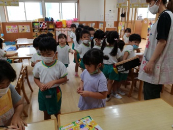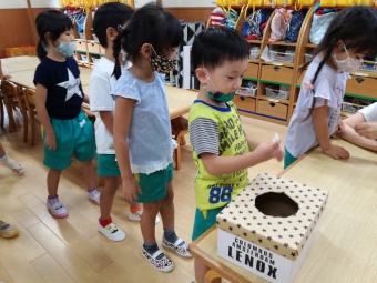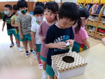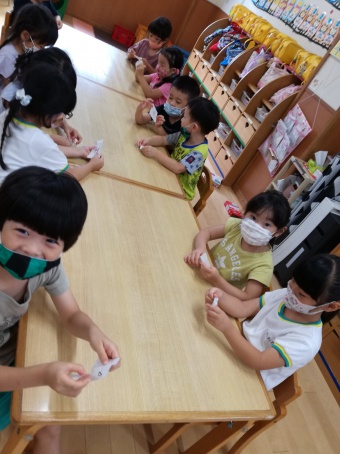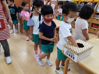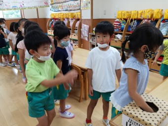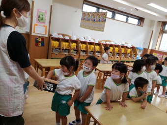 2020.09.10 立正キッズ日記 年中さん運動会練習 年中さんの運動会練習の様子です。あと2日で本番です。 日頃の練習の成果をだせるように頑張っています。 練習の後は、お父さんお母さんの席を決めるくじ引きをしました。 早く見てもらいたいですね!