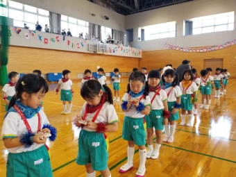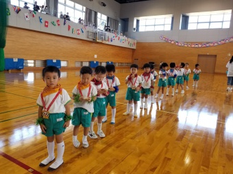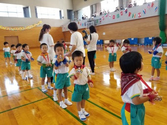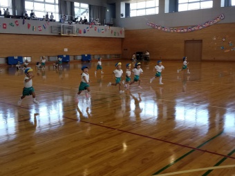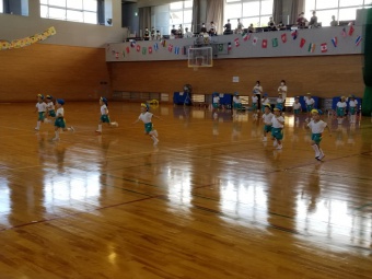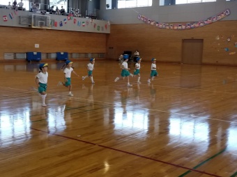 2020.09.12 立正キッズ日記 年中組運動会 年中組さんもがんばりましたね。 かけっこは力一杯走りました。バルーンは沢山練習してきたので、すばらしい姿をおみせすることが出来ました。いつも練習の時から、目をきらきら輝かせ、指の先までピン!と、楽しそうに練習していた成果が表れましたね。そして、仲良く踊ったフォークダンスで締めくくりです。