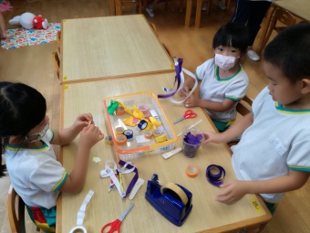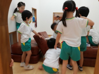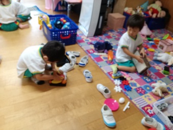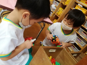 2020.09.25 立正キッズ日記 みんな色んな遊びに夢中~ 今日はずっと雨が降っていましたね。 あの暑かった日々はどこへやら・・・と思わせられるほど肌寒かったです。 そんな中、子供達はお外には出れなくても、広い教室と広い廊下があるので、いつも通り元気いっぱいです。 写真は、今日の何げない一コマを撮りました。みんな動きが速いのでぼやけている写真もありますし、写っていない子たちもいると思いますが雰囲気が伝わればと思います。 0,1歳児さんはまた来週にでもおのせしますね!