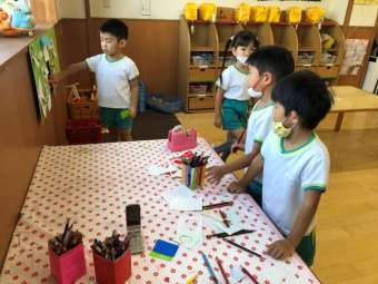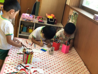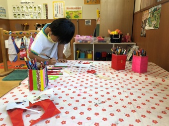 そんな遠足への思いをはせている今日この頃、りす組さんでは子供たちが、何やら一生懸命に作っています。