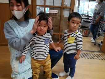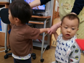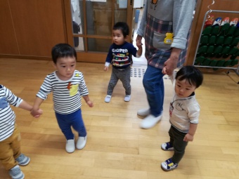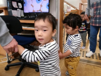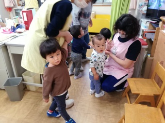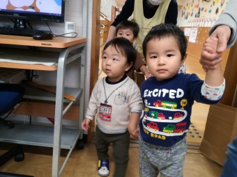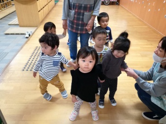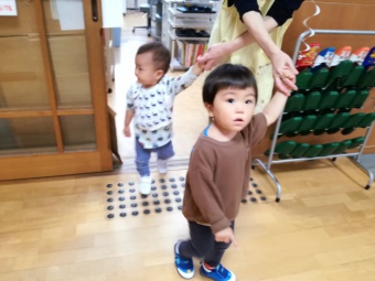2020.10.13 立正キッズ日記 0,1歳児さんのよちよちお散歩 つぼみ 、ふたばぐみさんのお部屋からよちよち・・・。 可愛い子達が職員室にお顔を見せに来てくれました。 このまま職員室の中を一周して、先生達におはようの挨拶をしてくれます。 初めの頃は、新しい空間にとまどったりしていた子達も、すんなりと入ってくれるようになり、 にこにこで手を振ってくれたり、タッチをしてくれます。 朝からほっこりの瞬間です。