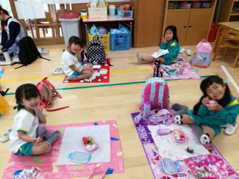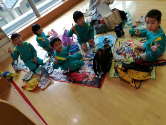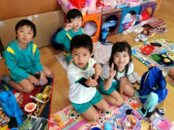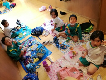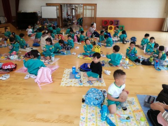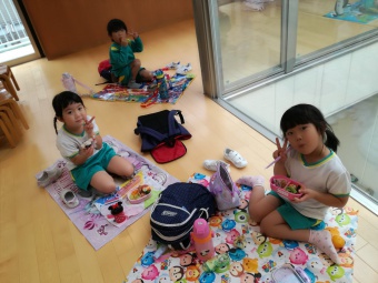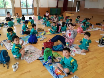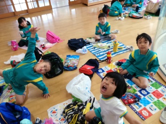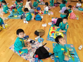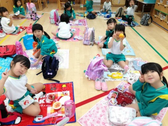 お友達と沢山遊んだ子供たちは、おなかペコペコです。園に戻って楽しみにしていたお弁当をいただきました。