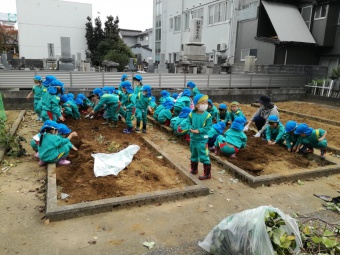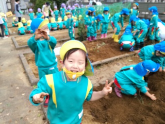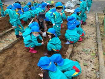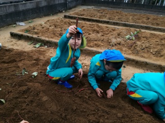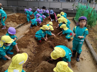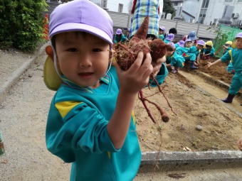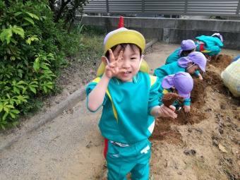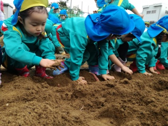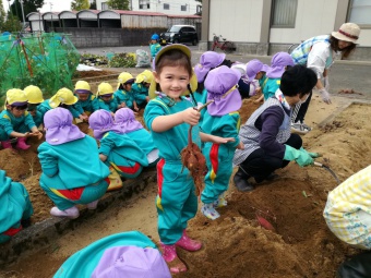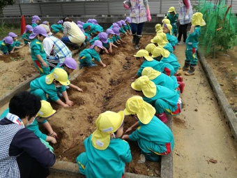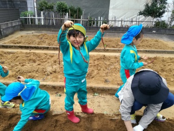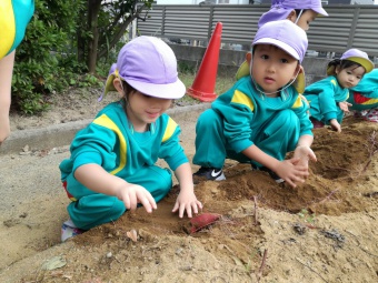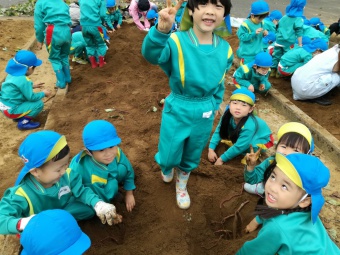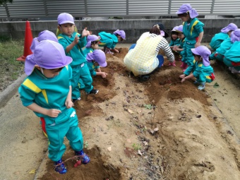 先日、立正幼稚園の農園にて、さつまいも掘りをしました。