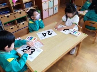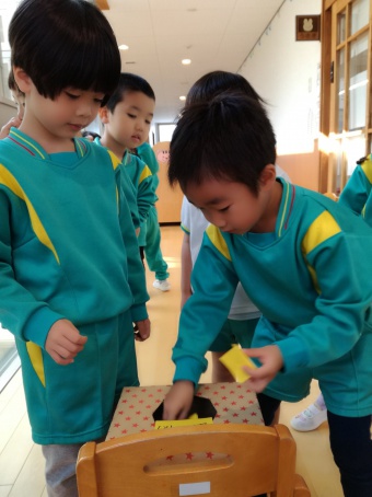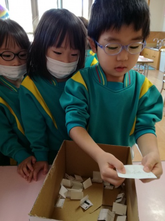 2020.11.16 立正キッズ日記 学習発表会の練習もバッチリ! いよいよ学習発表会ですね。 子供たちは毎日練習を重ね、おうちの方に見てもらう準備もバッチリです。 今回は、おうちのかたの席も、子供たちがひいた番号で決めさせていただきます。 みんな、ドキドキしながら番号をひいています。 当日は、是非楽しみにいらしてくださいね。