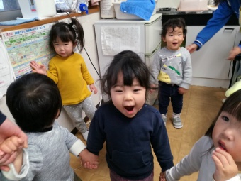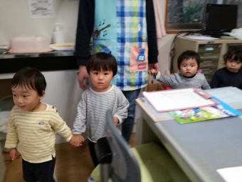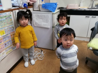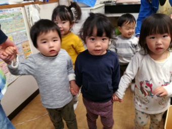 2020.12.08 立正キッズ日記 いらっしゃーい かわいいかわいいつぼみ組のお友達が、今日も職員室におはようの挨拶をしにきてくれました。 初めはなかなか入りにくそうにしていた子たちも今ではすんなり。 先生たちと少しお話をしてから、ぐるっと一周し、仲良く手をつないでお部屋に戻っていきました。
