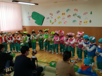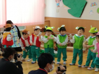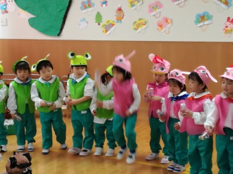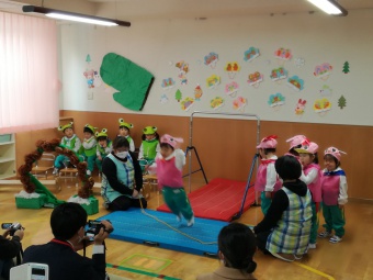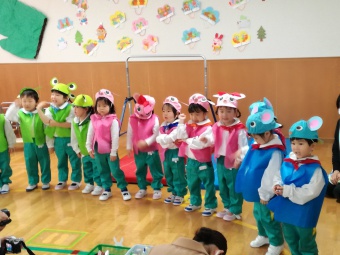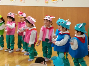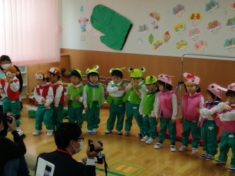 2021.02.10 立正キッズ日記 2歳児さん発表会 今日は、2歳児さんの発表会が行われ、おうちの方に見に来ていただきました。 てぶくろを題材に子供たちはかわいい動物さんの役になりきり、セリフを言ったりお歌をうたったりと、かわいい姿を見せてくれました。 子供たちも、おうちのかたの前で発表でき、とってもうれしそうでした。 お忙しいなか見に来てくださりありがとうございました。
