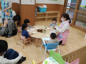 0歳児さんの保育参加の様子です。