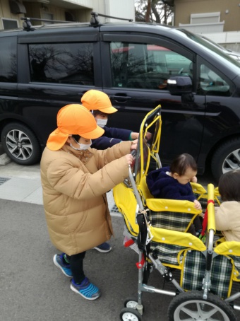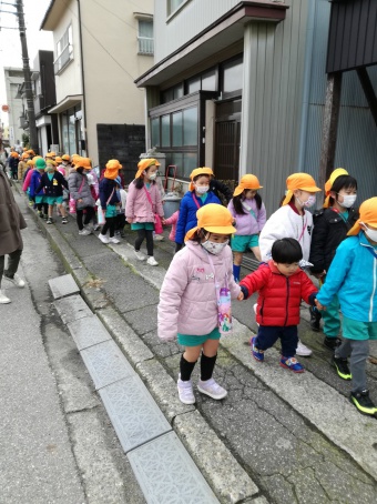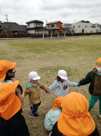 2021.03.08 立正キッズ日記 お別れ散歩 今日は、0,1歳児さんと年長組さんとで、お別れ散歩に行ってきました。 手をつなぎ東中野公園に行き、滑り台で遊んだり、あーぶくたったをしたりとみんなで楽しく遊びました。 最後には、プレゼント交換をして年長組さんにとって良い思い出になりました。