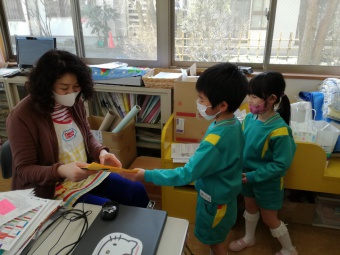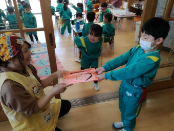 2021.03.11 立正キッズ日記 先生、今までありがとう! 年長さんからのサプライズプレゼントをもらいました。 前日から年長さんに『好きな食べ物はなんですか?好きな色は何ですか?好きな花はなんですか?と質問攻めをされていた先生達。 今日、各先生達のもとへ子供たちが手作りプレゼントを私にきてくれました。 特徴をつかんだ(笑)先生達の似顔絵のほかに、好きな食べ物や花の絵が描いてあります。 みんな、ありがとう!大切にするね。