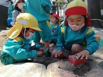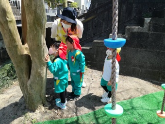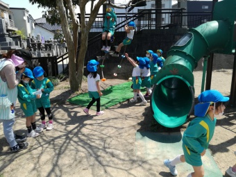 2021.04.21 立正キッズ日記 お外遊び!楽しいね!! 今日の園庭での様子です。 得意な遊具で自慢げに遊ぶ子や、お砂場でお皿に砂をたっぷりのせカレーライスを作っている子、園庭の端から端までかけっこしたり、木にいる蟻さんをじっと目を凝らして見ている子、などなどとーっても可愛い子供たちの姿がありました。 これからますます身体を使って遊ぶ機会が増えますね。と同時に心も体もたくましくなっていくと思います。楽しみですね。