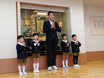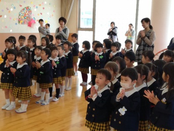 年長、年中組に進級した園児達が、始業式で園長先生からお話を聞きました。