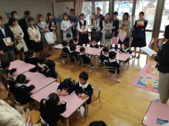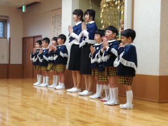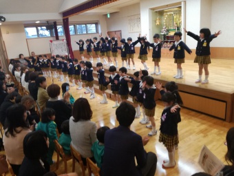 2018.04.09 立正キッズ日記 入園式 本日、平成30年度の入園式が行われました。 0才児さんから3才児さんまでの可愛い園児たちがお父さんやお母さんと一緒に式に参加しました。 年長さん数名によるののさまへのお参りから始まり、園長先生のお話、そして全年長のお兄さんお姉さんからのダンスとお歌のプレゼントがありました。 さあ!明日からはいよいよ幼稚園が始まります。みんな!楽しく過ごしましょうね。待っていますよ!!