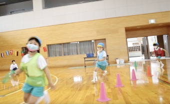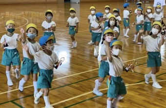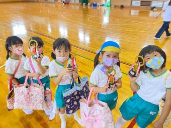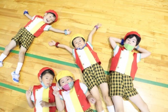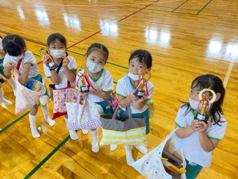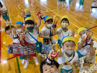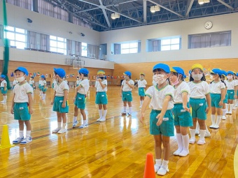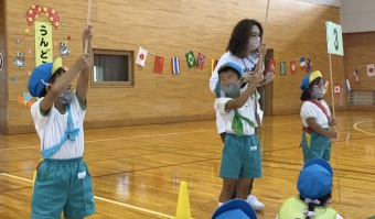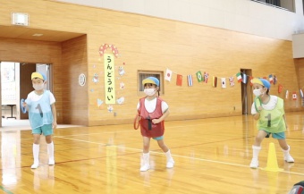 今年の運動会は、年長さんのみが2000年体育館で行いました。