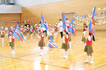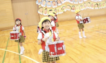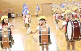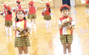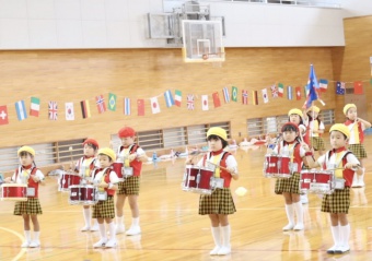 オープニングは恒例の鼓隊演奏です。年少、年中の時から憧れていた鼓隊が出来たうれしさと、沢山の練習を重ねた自信に満ちあふれた表情です。