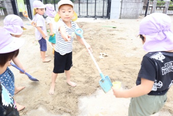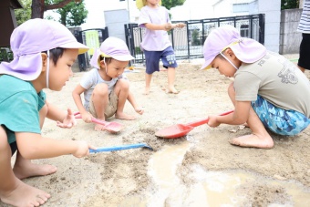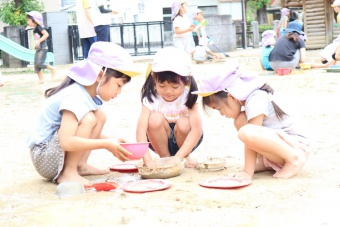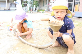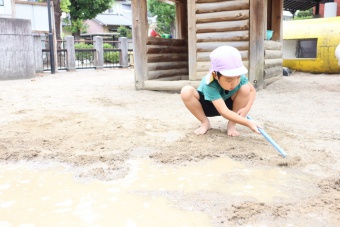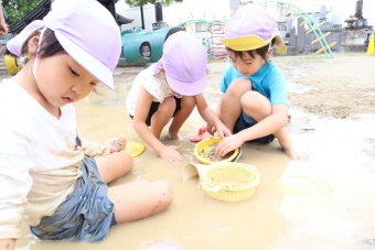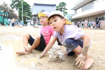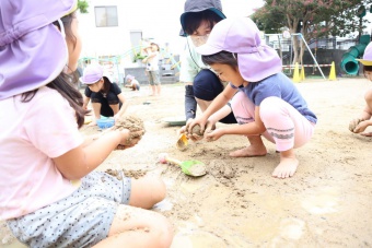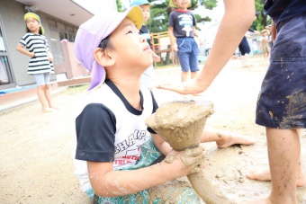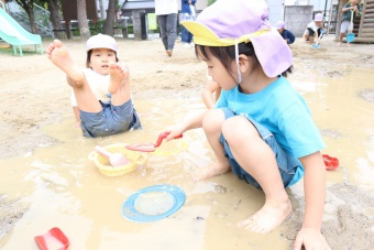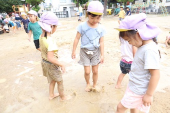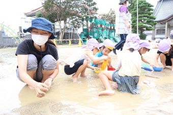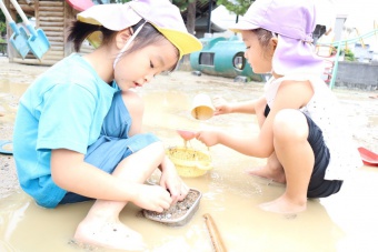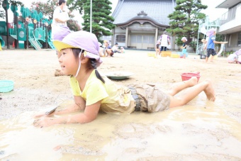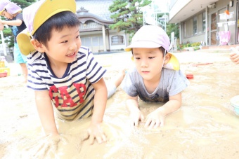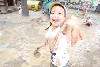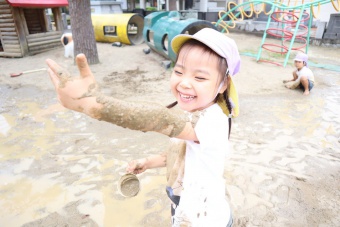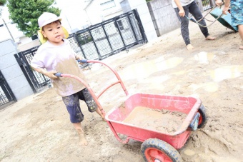2021.09.15 立正キッズ日記 年中組さん どろんこ遊びに夢中~ 今日は、沢山泥んこになって遊ぼうね~!! 待ってましたと言わんばかりに園庭に飛び出していったのは年中組の子供たちです。 水を流して川を作り、せき止めてみたり、またその中ではまるでプールにはいっているかのごとく泳いでいる(??)子もいます。 もう、顔も身体も泥だらけ!全身で泥の感触を感じ、そして頭ではいろんな遊び方を試行錯誤です。 お母さん、帰った後からのお洗濯、ありがとうございました。