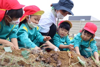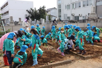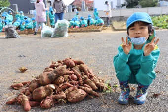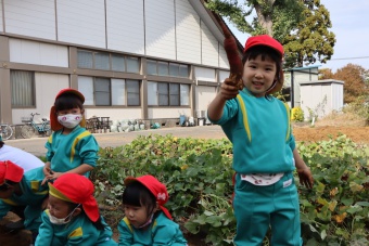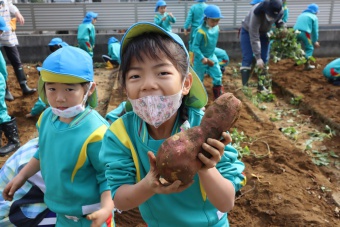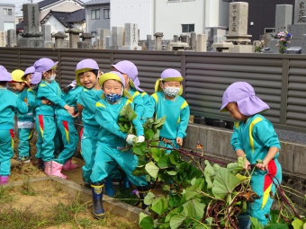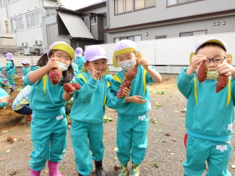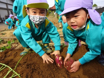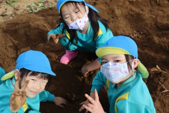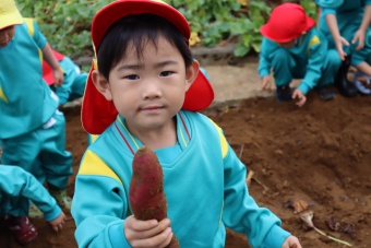 2021.11.01 立正キッズ日記 お芋掘り 「先生ー!みてーー!!」 「ここにもあるーー!!」 と終始途切れない子供たちの興奮した声。 幼稚園の畑では夏野菜が育った後、今度はさつまいもの収穫です。 大きな大きなデブいもちゃんから、細くて小さ〜な赤ちゃんいもまで色んな大きさのお芋が掘れました。 秋晴れの下で沢山の歓声をあげながら楽しいお芋掘り日となりました。