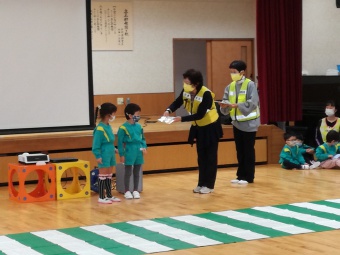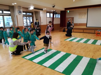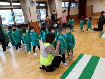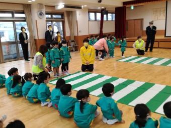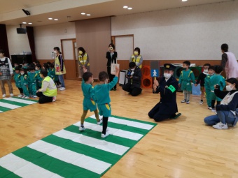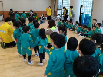 2021.12.10 立正キッズ日記 交通安全教室 年少、年中組さんを対象に交通安産教室が行われました。 富山県交通安全母の会や中央警察署の方々から、子供たちに安全に道路を渡るお話を聞きました。 1 横断歩道を渡るとき、足は止まる。絶対飛び出さない。 2 右、左、右としっかり頭を動かして見る。 3 自動車や、バイク、自転車の音を耳を澄まして聞く。 止まる 見る 聞く 以上3つのお約束をしたので、お家でも今一度子供たちと確認してみてくださいね。