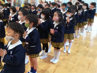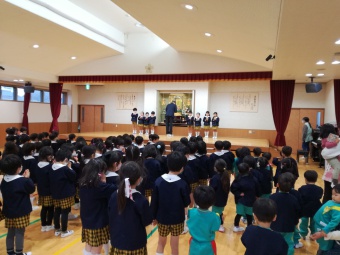 2022.01.11 立正キッズ日記 3学期始業式 3学期の始業式を行いました。 令和4年になり、初めて全員がそろった園内はとても賑やかです。 家族で出かけた話をしてくれる子供たちも沢山いました。みな充実した思い出に残る冬休みを過ごしたんですね。 子供たちも次のステップに向かって、ますます成長する姿を見せてくれることでしょう。