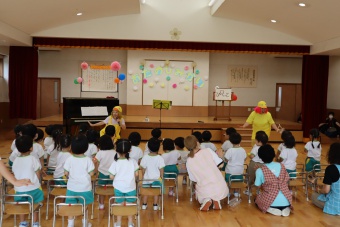 2022.06.24 立正キッズ日記 お楽しみ会 今日は待ちに待ったお楽しみ会!今年は立正幼稚園にぴぺっとさんが来てくれました。ピアノとトランペットの素敵な音色と一緒に踊ったり、マラカスを振ったり、お歌を歌ったりしました。 みんな、ぴぺっとポーズ上手にできたかな? とっても楽しかったね!