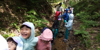2022.07.26 立正キッズ日記 年長組お泊り保育へレッツゴー 年長組になっての大きなイベントといえば、毎年恒例のお泊り保育です。 準備に準備を重ね、あとは思いっきり楽しむだけです。 森の中を手足を使い、時にはしりもちをつきながら歩き進み、 川では全身びちょぬれになりながら水の流れに逆らって歩いていきます。 こんな経験なかなか出来ないですね!しかもそれが大好きなお友達と一緒ですからね。 また1つ幼稚園での大切な思い出の1ページが出来た子供たちでした。