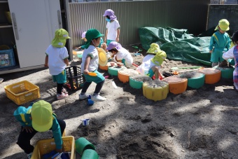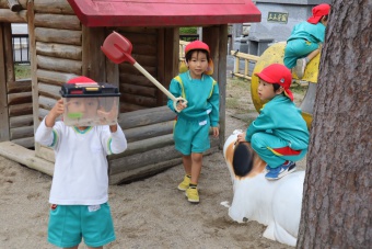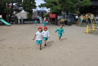お砂場で遊ぶ子、かけっこや遊具で体力勝負する子など様々です。