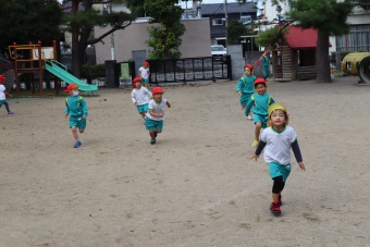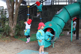 この日はとても気持ちの良い秋晴れ!そんな秋の太陽をたくさん浴びながら思いっきり外遊びをしました。