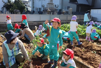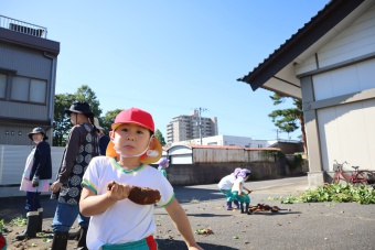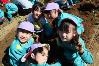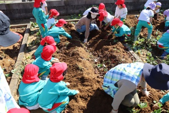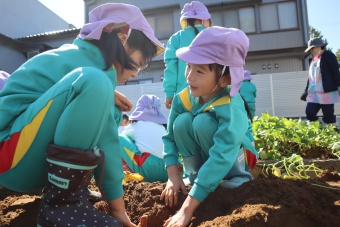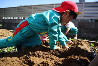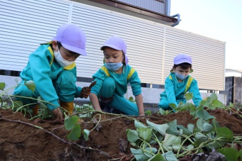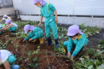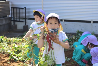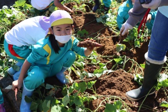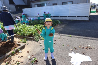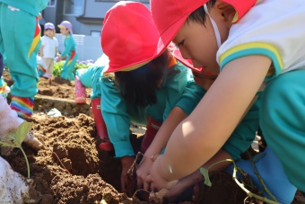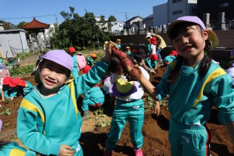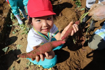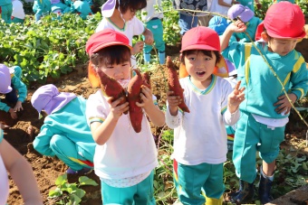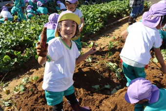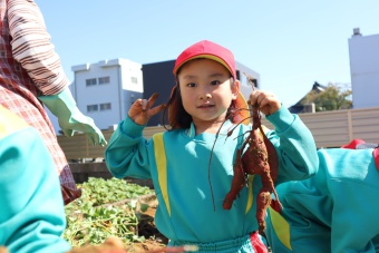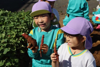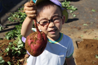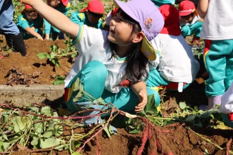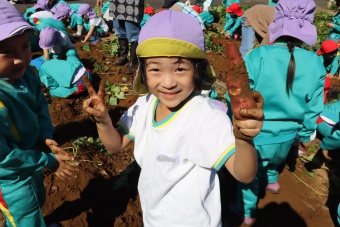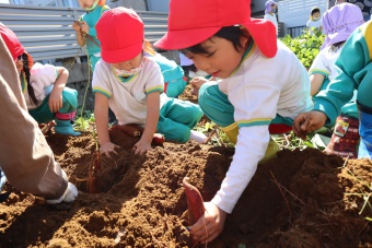 2022.10.20 立正キッズ日記 芋掘りpart1 出てくる出てくるいもいもいも~!! 初めはなかなか出てこなかったいもも、掘っていくうちに少しずつ顔を見せ始めます。 出てきた-! 取れたー!!と歓声が響き渡ります。 夏野菜を育て終えた幼稚園の農園で行っている秋のいもほりはこちらも子供たちの楽しみにしているイベントです。 おおきな幼虫が出てきたり、足の沢山はえてる虫が出てきたりと、いも以外のものも出てきますが(笑)それもこれも子供たちの楽しい発見になってそれはそれは大騒ぎで楽しいいもほり日よりとなりました。