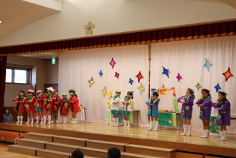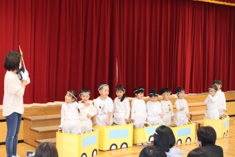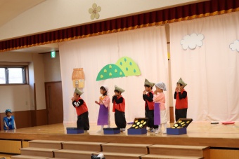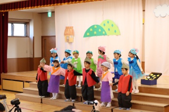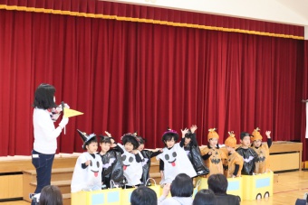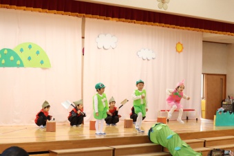 年中組さんは初めての劇に挑戦です。大きな声で、一生懸命覚えたセリフを言うことが出来ました。