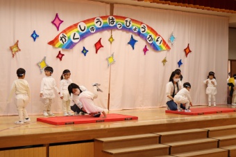 年少組さんはかわいい衣装に身を包み、ダンスを見せてくれました。