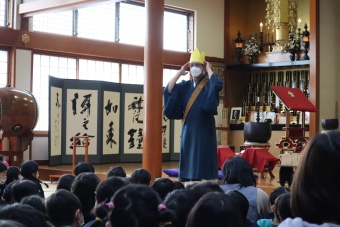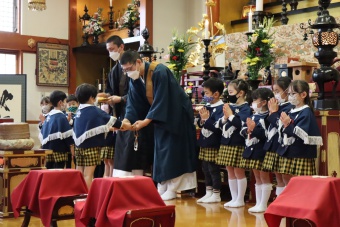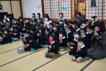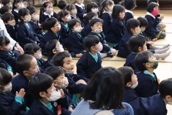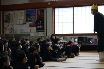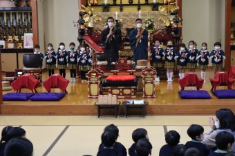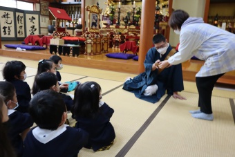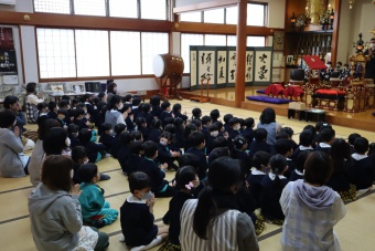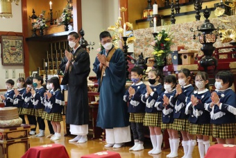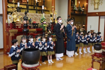 2022.12.08 立正キッズ日記 成道会(じょうどうえ) 大法寺の本堂において成道会のお参りを行いました。 成道会とは、ののさまがお悟りを開かれたことを記念して行われるお参りです。 慣れない本堂という場所に戸惑いを見せる子もちらほら。だけど年長さんが前にあがり、立派に献花献灯する姿を見て子供たちは静かにお参りをすることが出来ました。 子供たちの目をみてください。真剣そのもので、園長先生扮する王子様にも釘付けです。 これからも引き続き子供たちは年に3回ほど本堂にてお参りをします。 お寺の幼稚園ならではの行事ですね。
