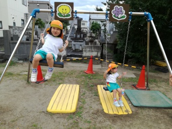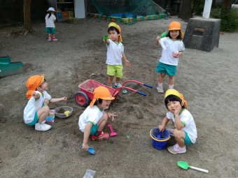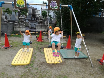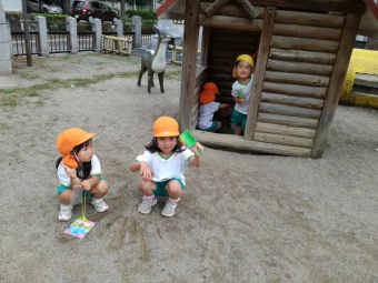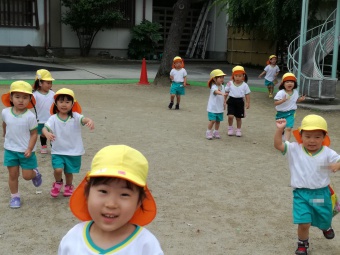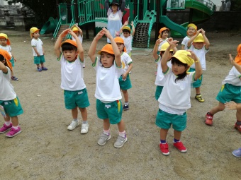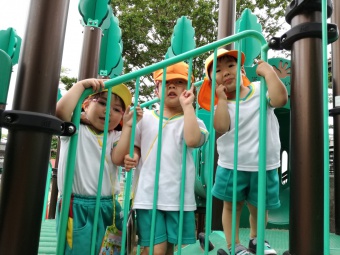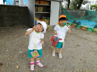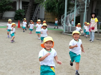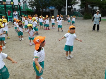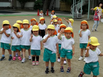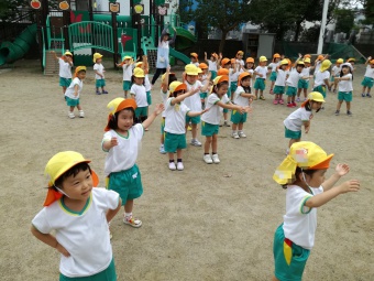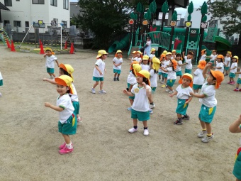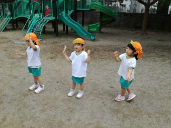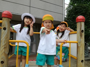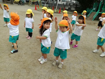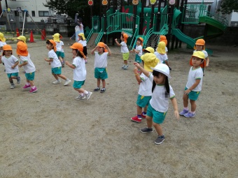 2018.06.27 立正キッズ日記 6月最後の園外保育 楽しみにしていた園外保育でしたが、この日も雲行きあやしく、園での活動となりました。 だからといって、子ども達の元気がなくなるわけではなく、いつも通りパワー全開です。 年少組さんが、晴れ間をみてお外に飛び出してきましたよ! ダンスの練習もバッチリです