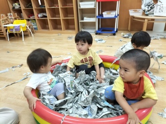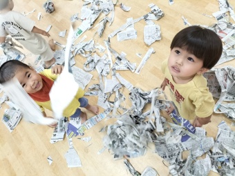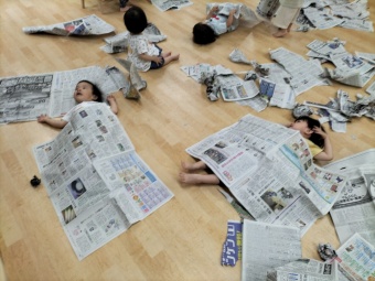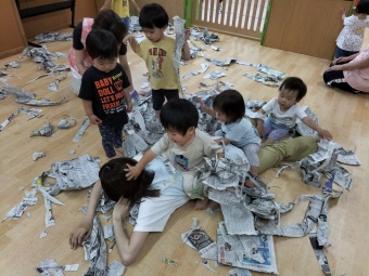 新聞紙を使ってとっても楽しそう!