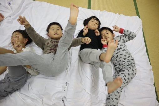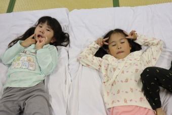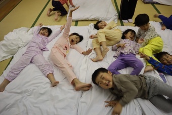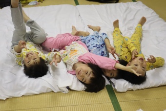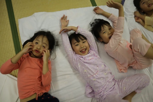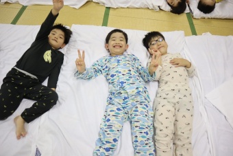 お家の方と離れてたくさんのお友達と一緒に泊まる初めての経験で、登園した時少し不安そうな顔をしていた子も、いつの間にか笑顔に。