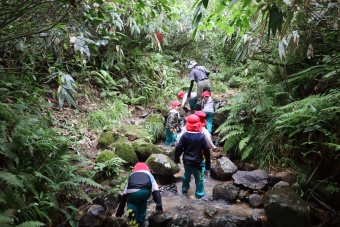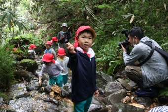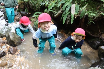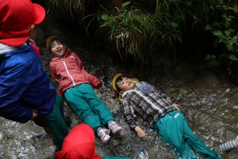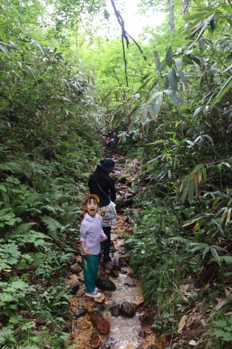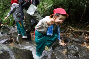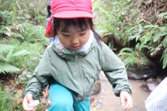 水はとっても冷たくて気持ちがいいと子供たちは大喜びです。森とは違い沢には大きなカエルがいたり、変わった石がたくさん落ちていました。