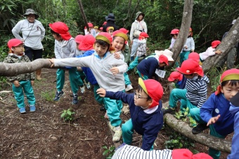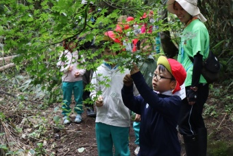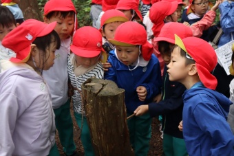トントンの森探検では、見たことのない色をした虫や、変わった匂いのする葉っぱなど、たくさんの自然に触れて、こどもたちは興味深々。