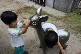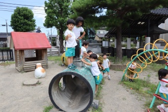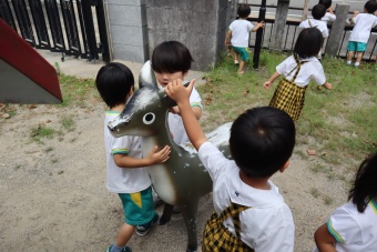 2023.07.20 立正キッズ日記 古い遊具とお別れ ここのところ、立正幼稚園はお別れ続きです。 園庭の杉と松から始まり、園バス、そして古くなった遊具・・・。 この日が最後ということで子供たちは沢山遊ばせてもらった遊具に、今までありがとうの思いを込めてお別れしました。 遊具が撤去されたら今度は別の大型遊具の場所移動です。 子供たちがさらに楽しく遊べるように園庭はこれから変わり続けて行きます。